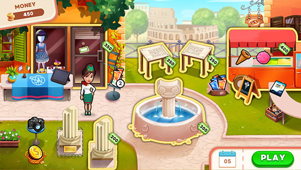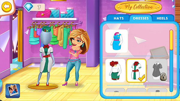There are tons of levels in this game, as you do travel all over the world to 7 destinations. Plus there are some fun mini-levels where you have to either find the mouse like a whack a mole game, or move customers from station to station or you have to achieve certain objectives. These games will land you diamonds, which you can spend on getting new fancy uniforms, designed by non other than Fabulous Angela herself.