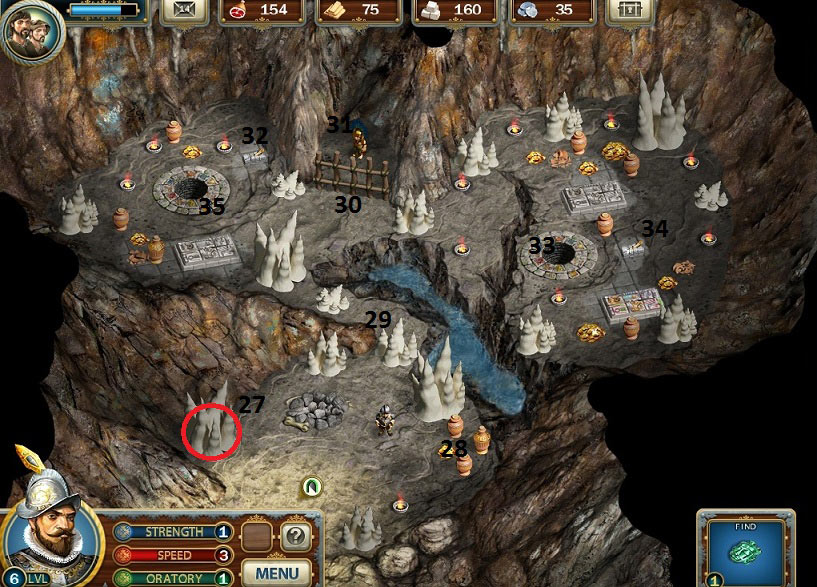 - Break bottom left stalagmite for secret page