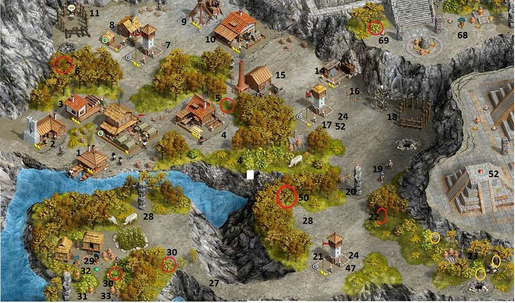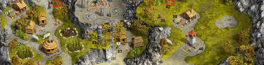 - Talk to Sacred Ground Guardian who wants 100 food (Expert wants 200 food...head back to beginning and chop bushes to make room for another garden and upgrade it twice; also upgrade sawmill once)