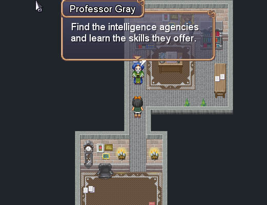 Once you find him, he tells you that he wants you to continue your studies while you are away. He reveals that there are special agencies around the world that can each teach you a special skill. To find these special agencies, you should look for buildings that are marked with a symbol of a tree.