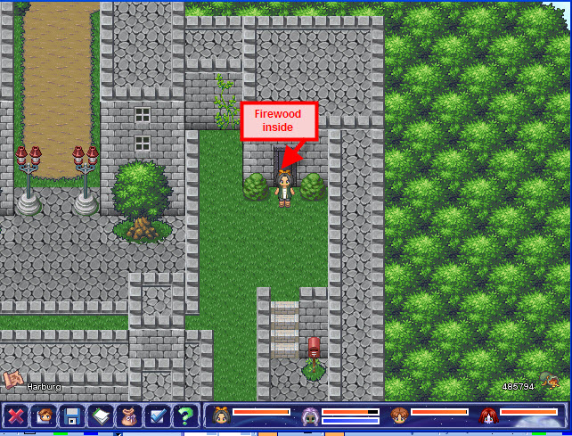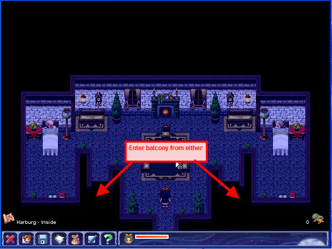 • Select the character wearing the red cloak on the balcony to receive more information regarding your quest and 100 gold coins.
