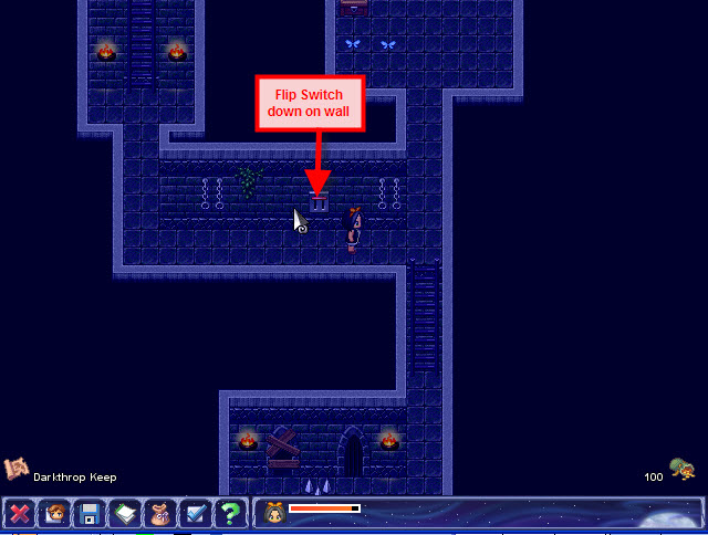 ·         Go to the right and flip the switch on the wall to the down position to lower the spikes in front of the doorway at the bottom of the screen.