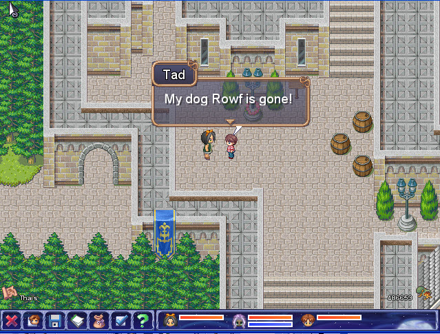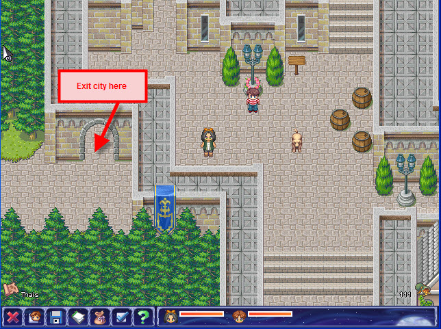 • Explore the woods with Te'ijal (who is quite powerful) locating 1 bag and 6 chests while you're fighting monsters on your way to the city of Thais . To locate some of the chests you'll need to explore areas that have no path. You should also equip Mel with the copper dagger and the leather boots before engaging in any fights if you haven't already done so.