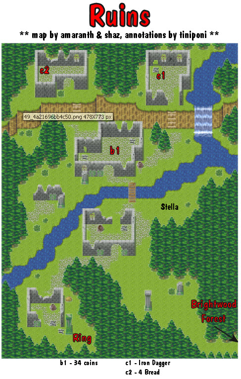QUESTS: See map screenshots for locations. Maps used by permission by Aramanth and Shaz annotations by Tiniponi. B=Bag and C=Chest, Star/Asterisk=Goodie Cave