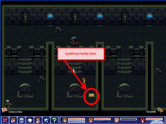 • Activate the levers behind doorways numbered 1 and 4 to make all possible Gunthrop Family Item (memoir) locations available along w/ all chests and all but 1 bags. Collect the memoir first and open all chests; then explore the rest of the catacombs by activating switches to have access to other parts of the catacombs. Activate the lever behind door number 7 to have access to one bag. Wish I could be more helpful...but I find the catacombs confusing.