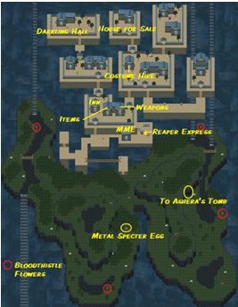 Check out all the shops and upgrade as much as you can. Here's another good place to stay, battle, level, and equip your party members; make sure to save your game often though as those ghosts and ghouls can be deadly!