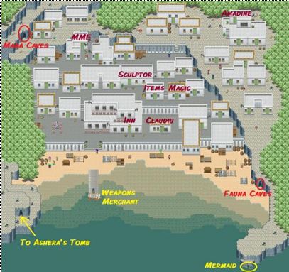 shouldn't be too difficult, but it does continue to spit out little crabs. Focus on attacking the Giant Crab instead of the little crabs; you know you can manage those easily once the big fight is over. After you kill the Giant Crab, make sure to loot the corpse as it may contain either Ashera's Helmet, Sandals, or Bow; all which could be very helpful to your party!Continue heading north as far as you can go. Make sure to open the brown chest—you'll obtain the Treasure Key, so now you can open all those blue chests you've been seeing. Keep heading north, and you'll reach Acropolis!