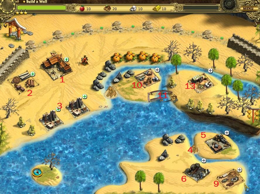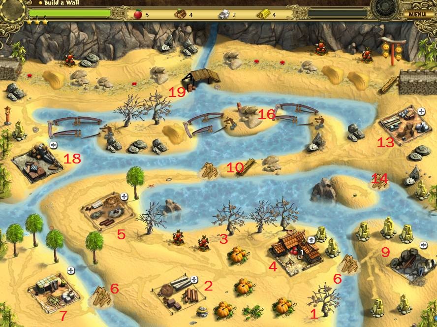 - Build wall, collecting stone and iron as needed.