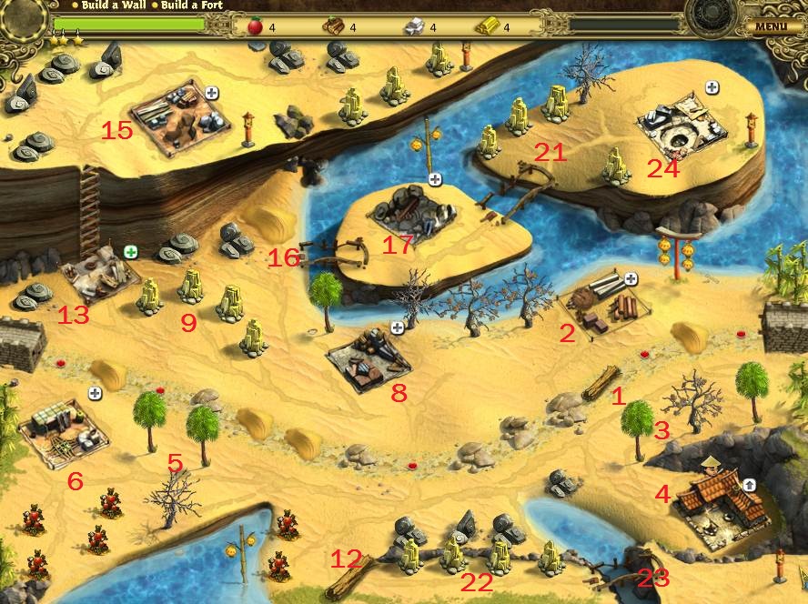 - Build fort 40 wood, 50 stone, 45 iron