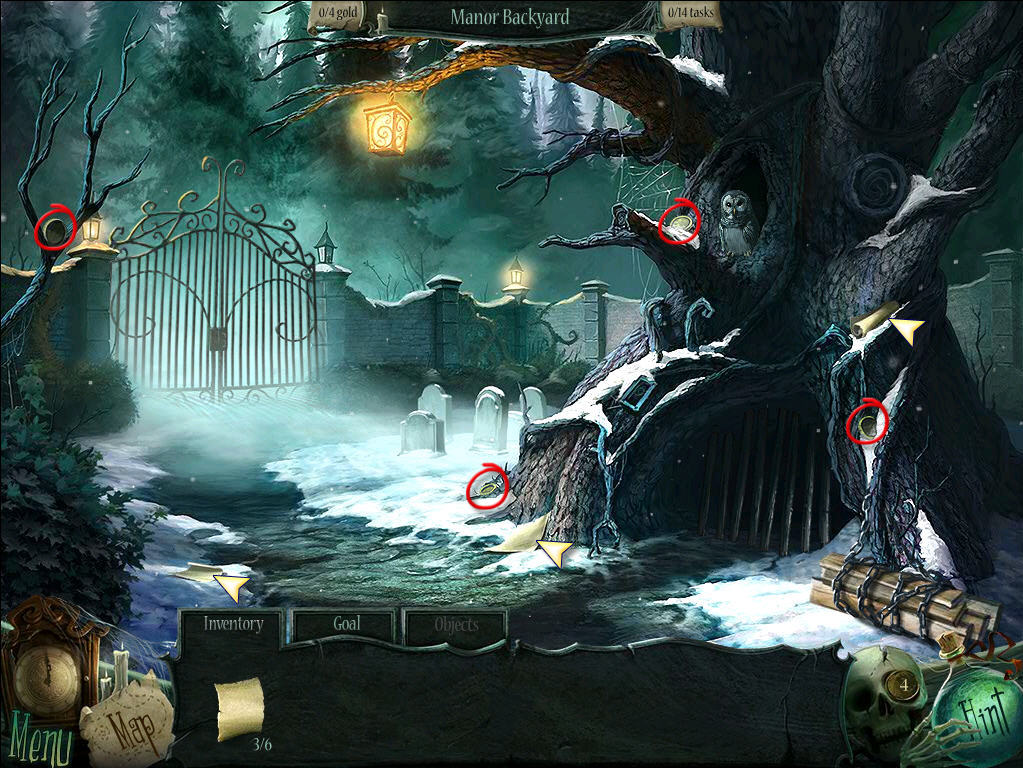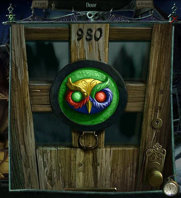 - Zoom in on the mansion's front door. Place the OWL PLAQUE PIECE in its proper place.