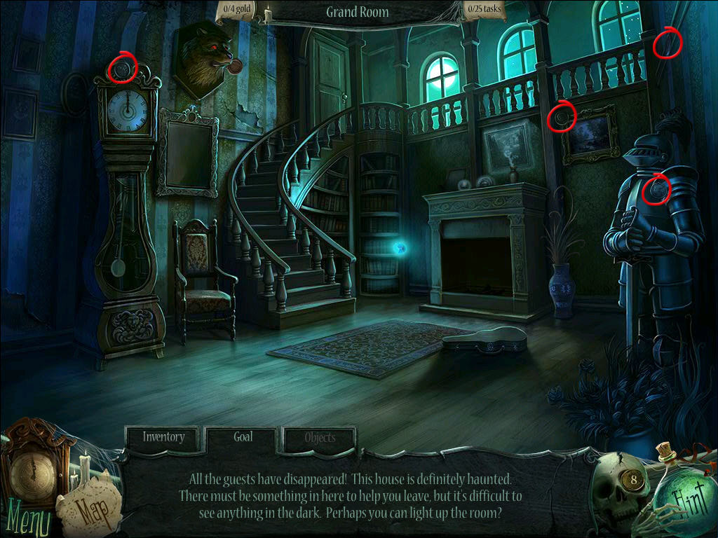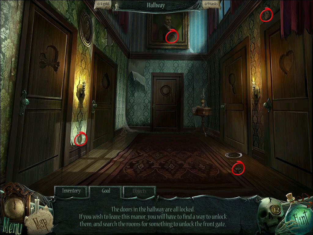 - Collect the GOLD COINS in the Grand Room to receive the MAP PIECE.