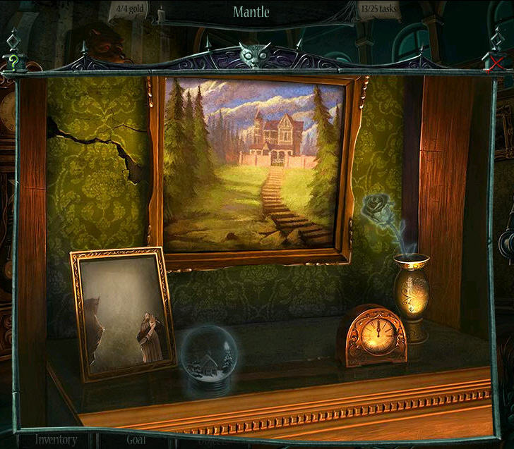 - Zoom in on the fireplace.