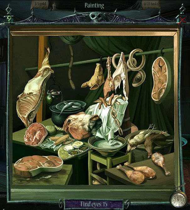 - Zoom in on the painting that hangs next to the basement door. This triggers a mini-puzzle.