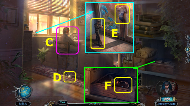 - Take POLICEMAN FIGURE and 1/5 MAYOR'S PHOTO (E).