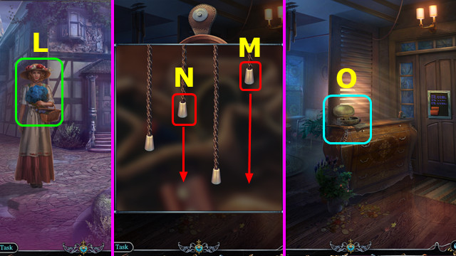 - Place GLASS PIECE (D); play HOP; earn FLOWER GIRL'S HAIRPIN.