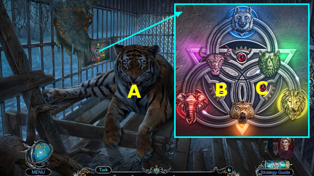 - Use SCISSORS; earn OXYGEN MASK; take 1/2 KEY CHAIN; place and select BUTTON (Q).