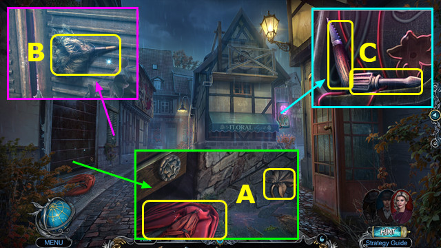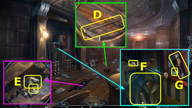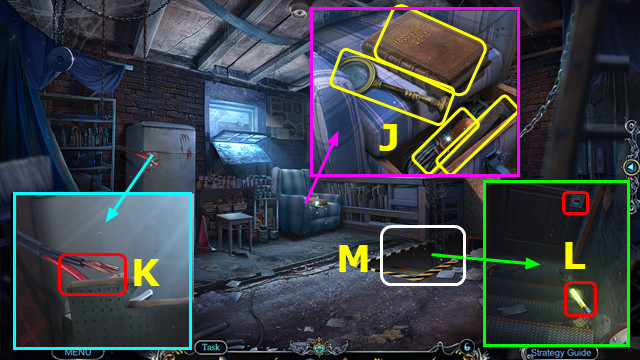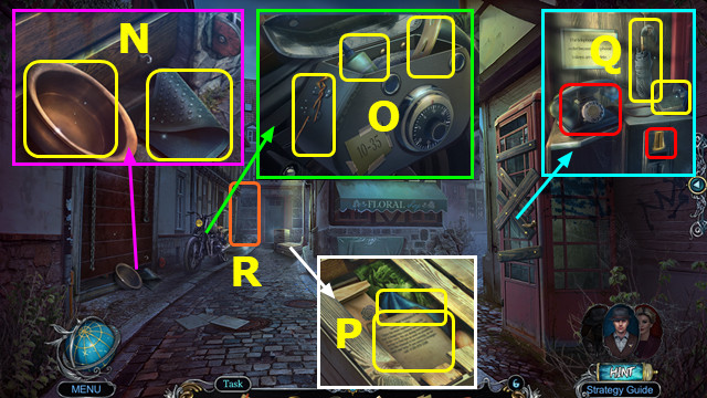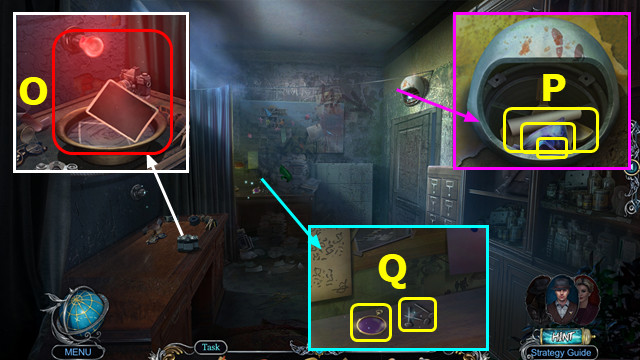 - Take WIRE; place LOCK DIAL and CODE; take GLUE and NAIL PULLER (O).