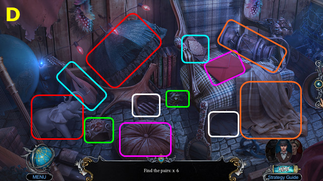 - Select PAIRS (D); earn 2/2 BAS-RELIEF FRAGMENT.