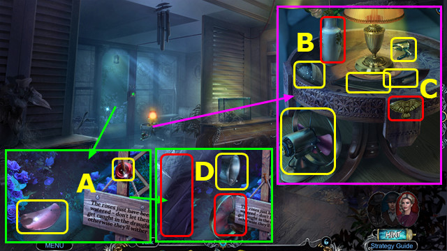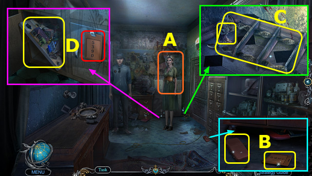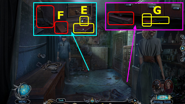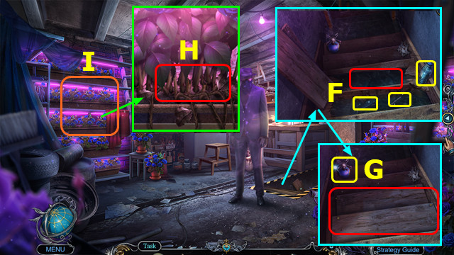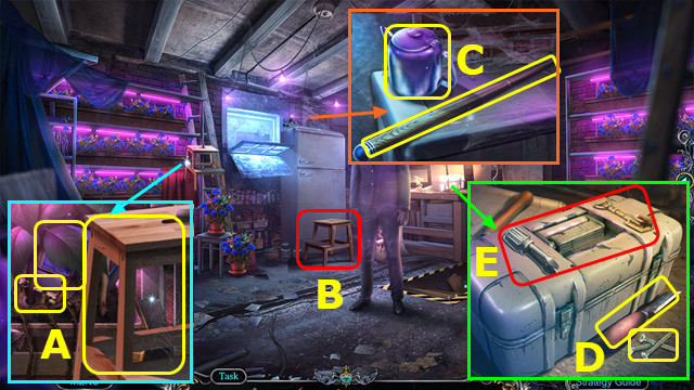 - Take STAND; use HERBICIDE; take FARMER FIGURINE and MASK (A).