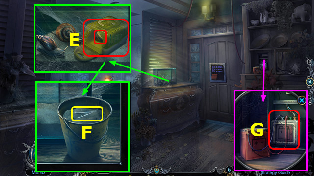 - Use CUE; take WATER, HAMMER, and SPRING (F).
