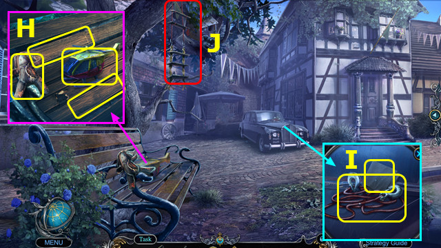 - Take SCARECROW and TOY HELICOPTER; use HAND SAW; earn PLANKS (H).