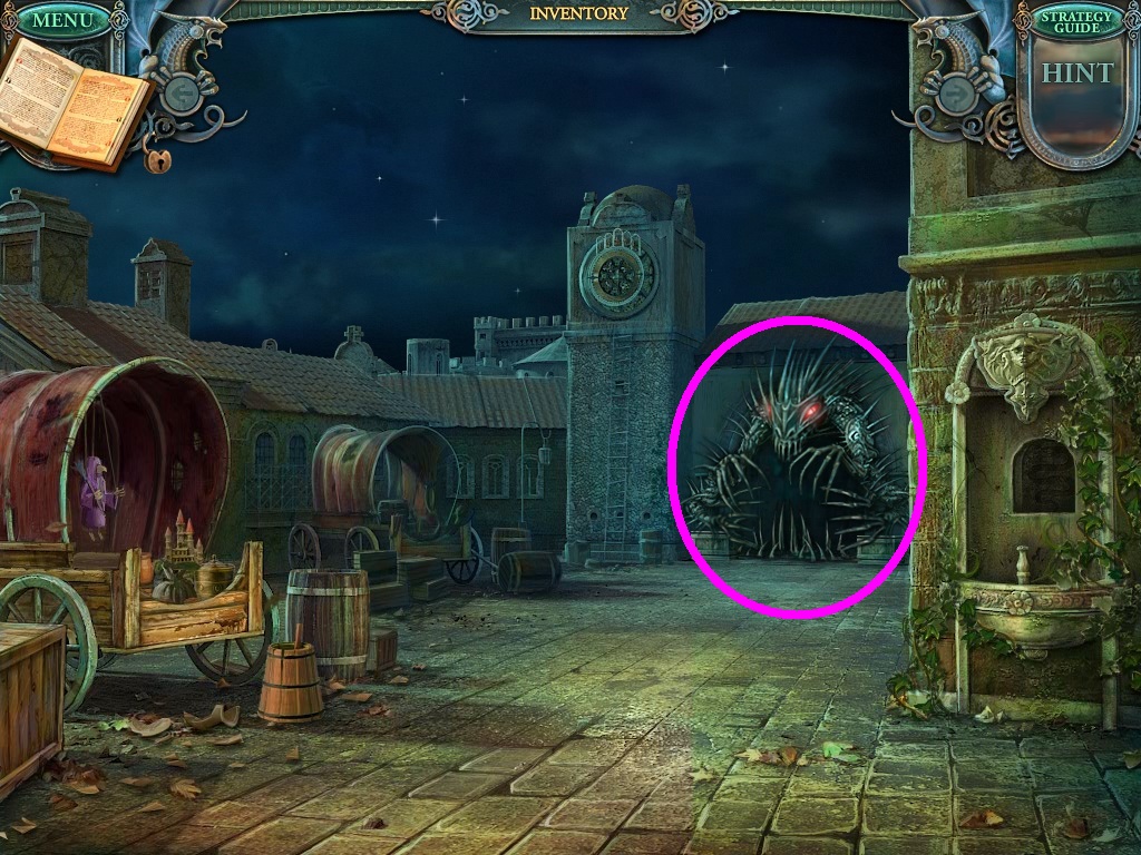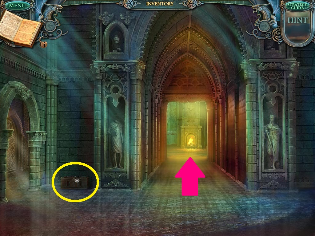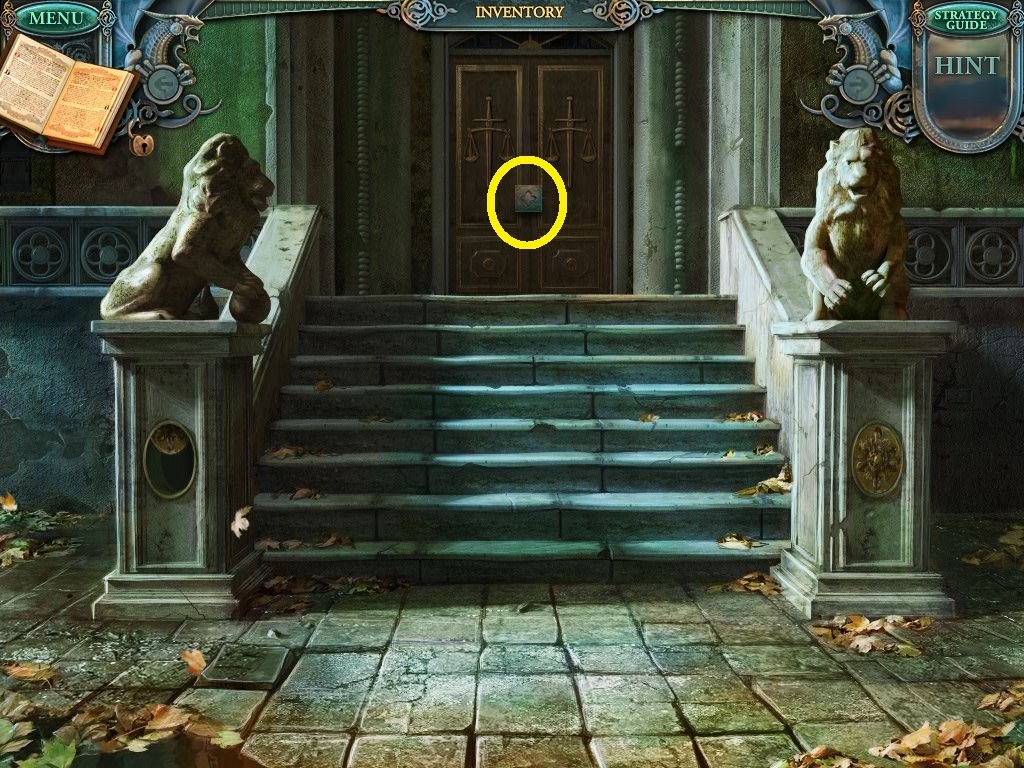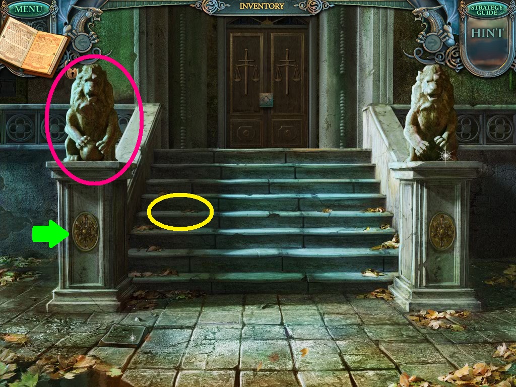 - Click the lion statue (pink circle).