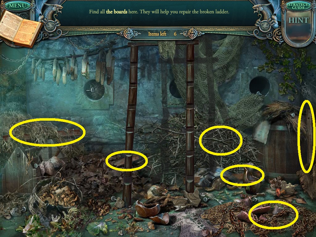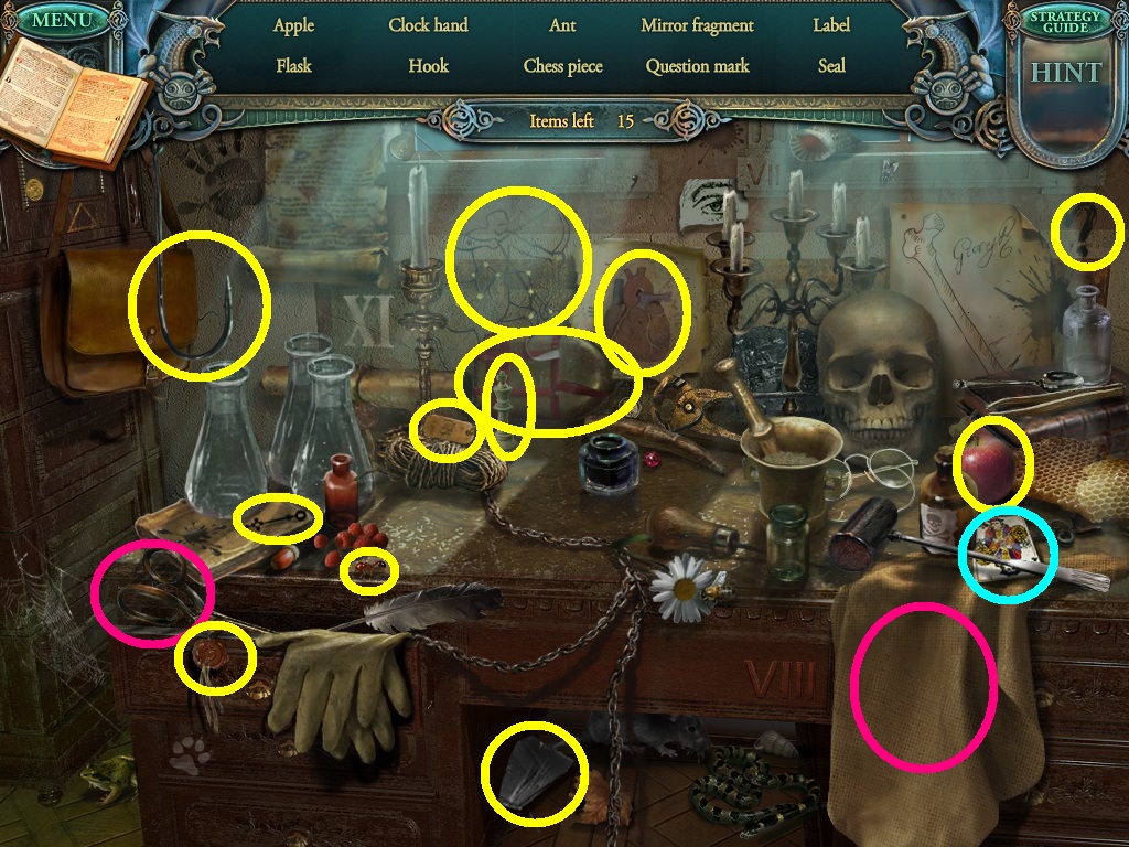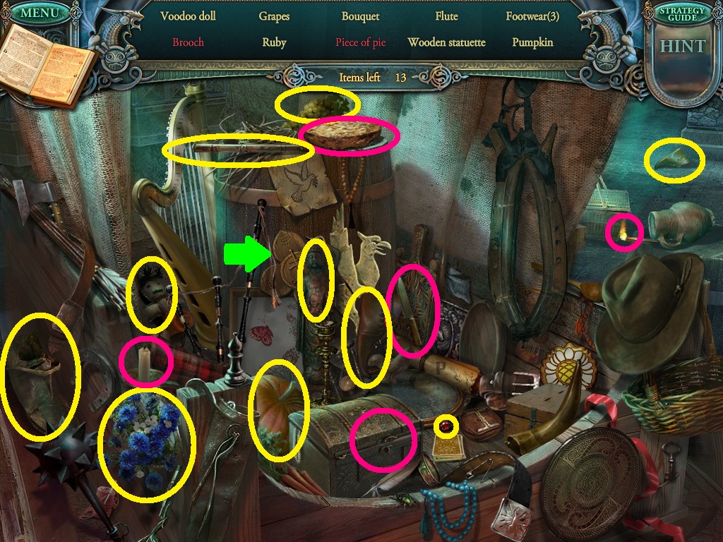 - Find the listed items (yellow circles).