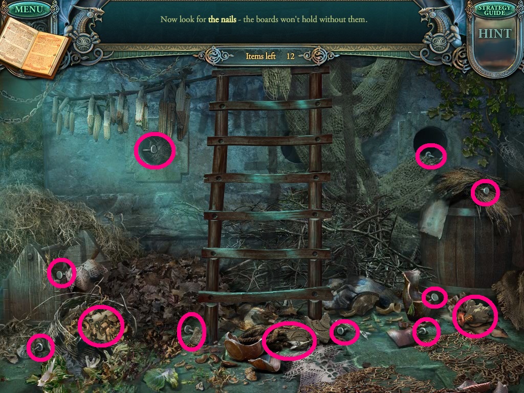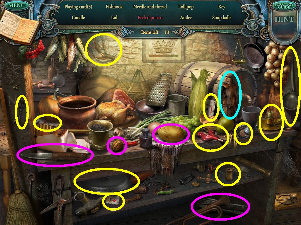- Find all the listed items (yellow circles).