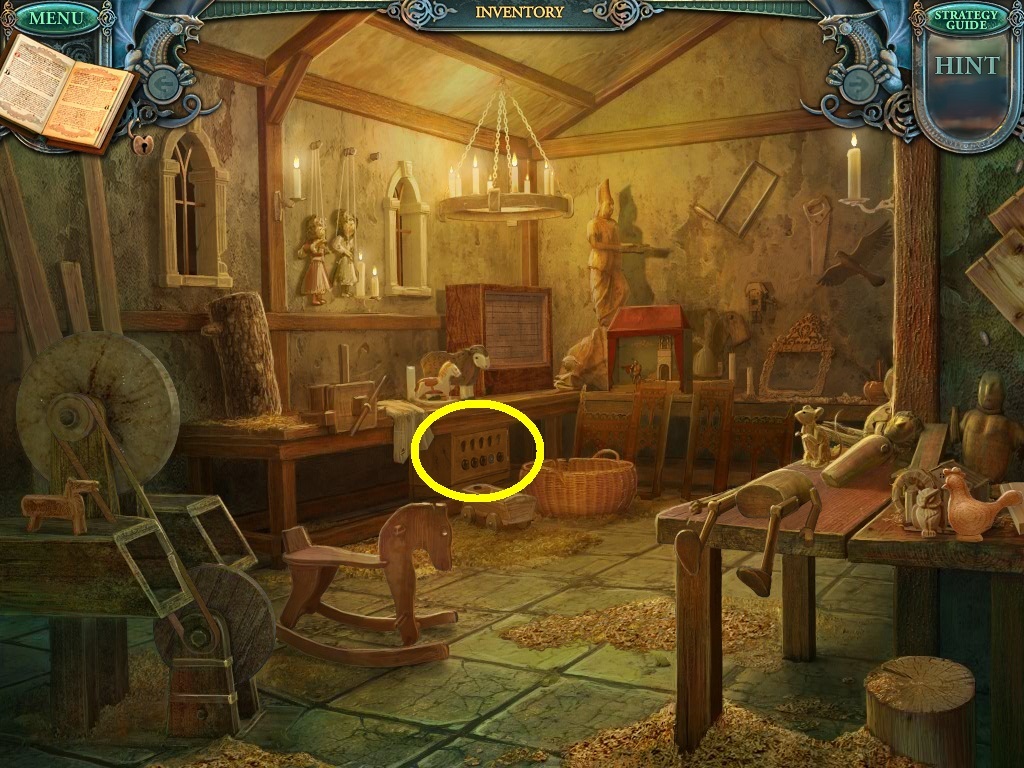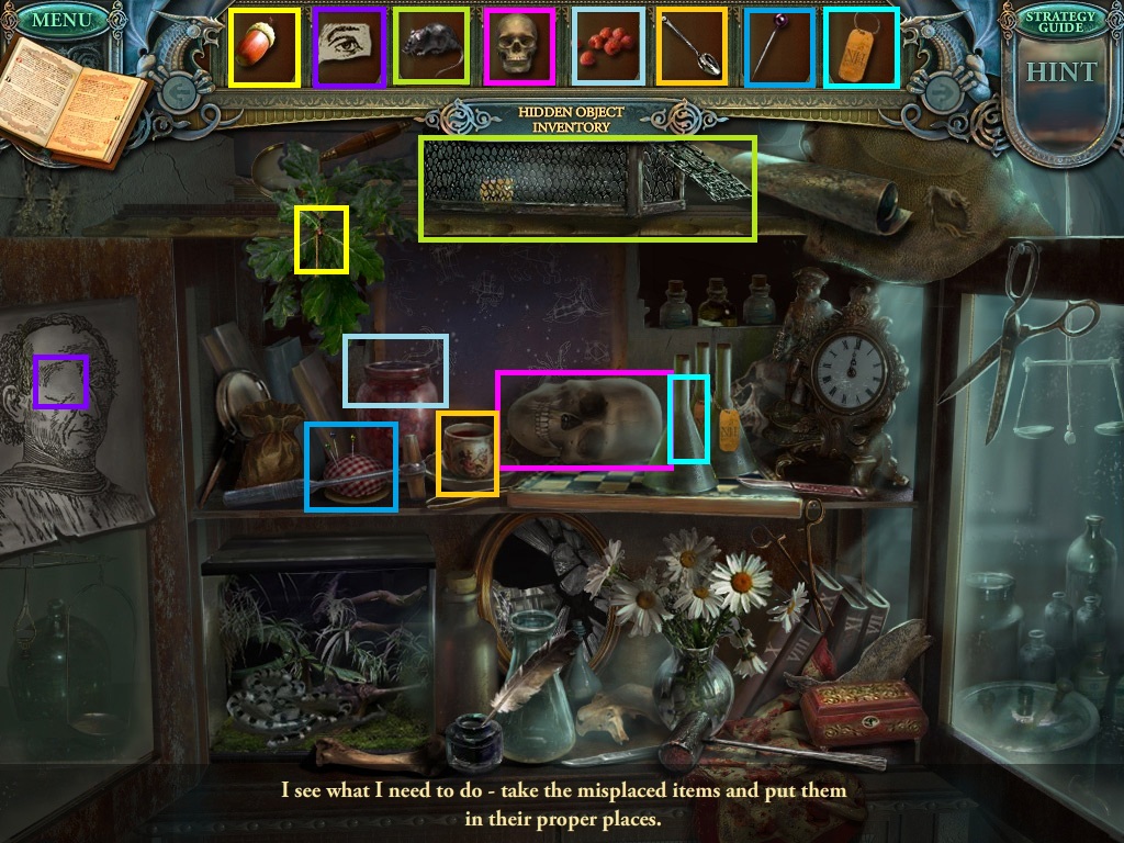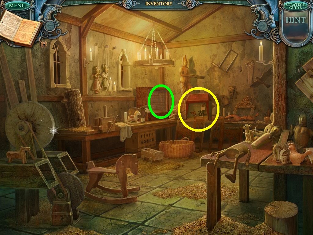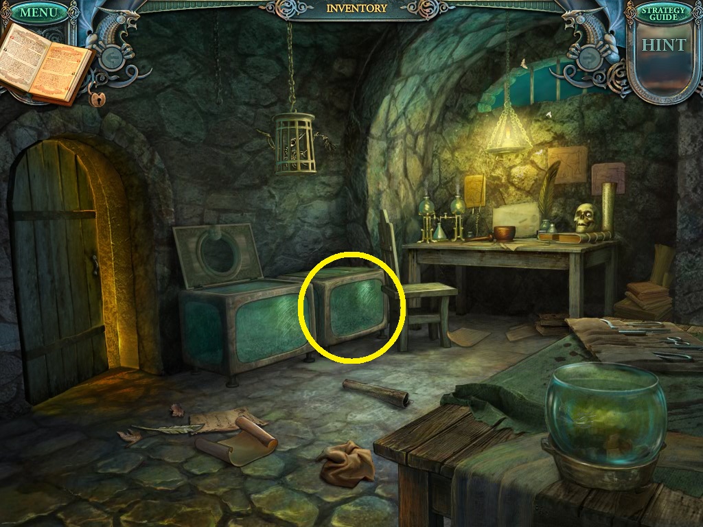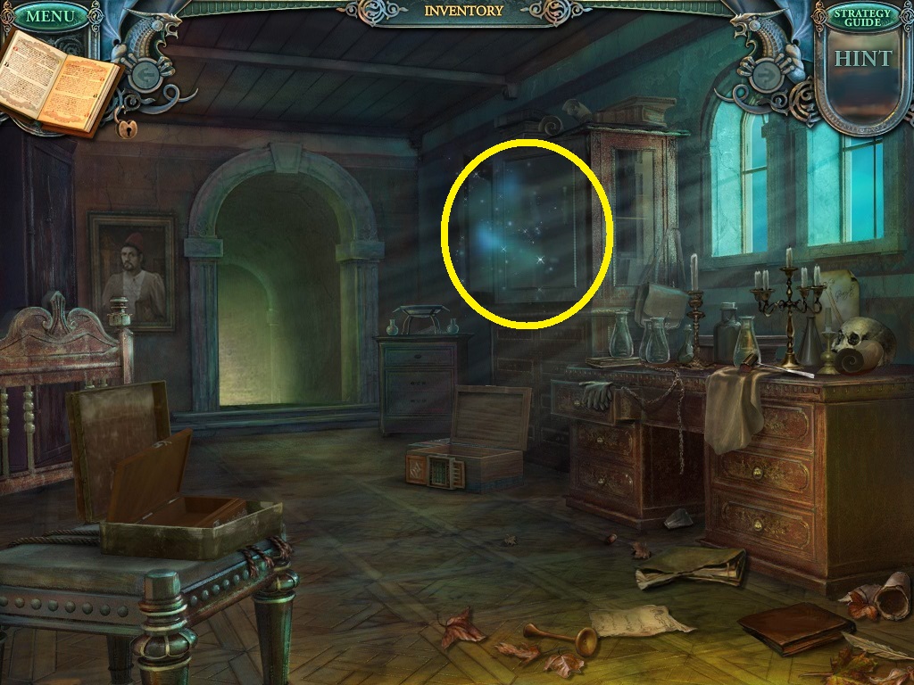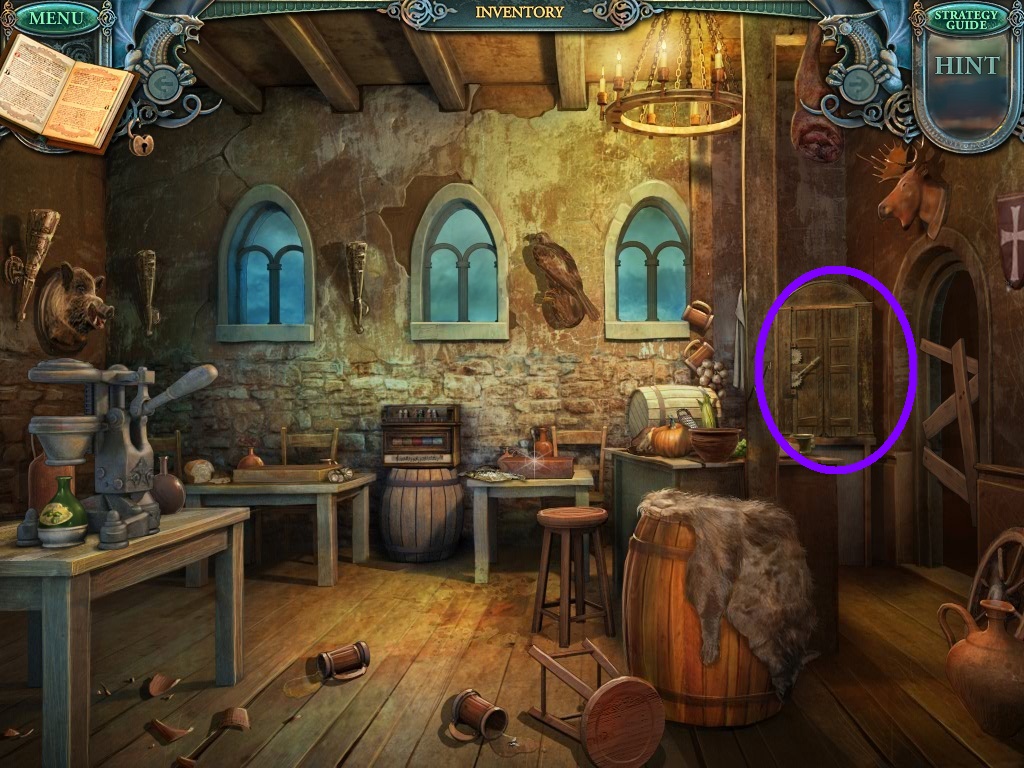 - Click the area over the desk in the apothecary to find the hidden object scene.