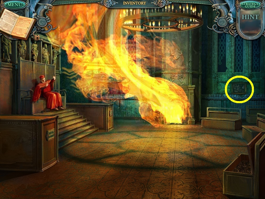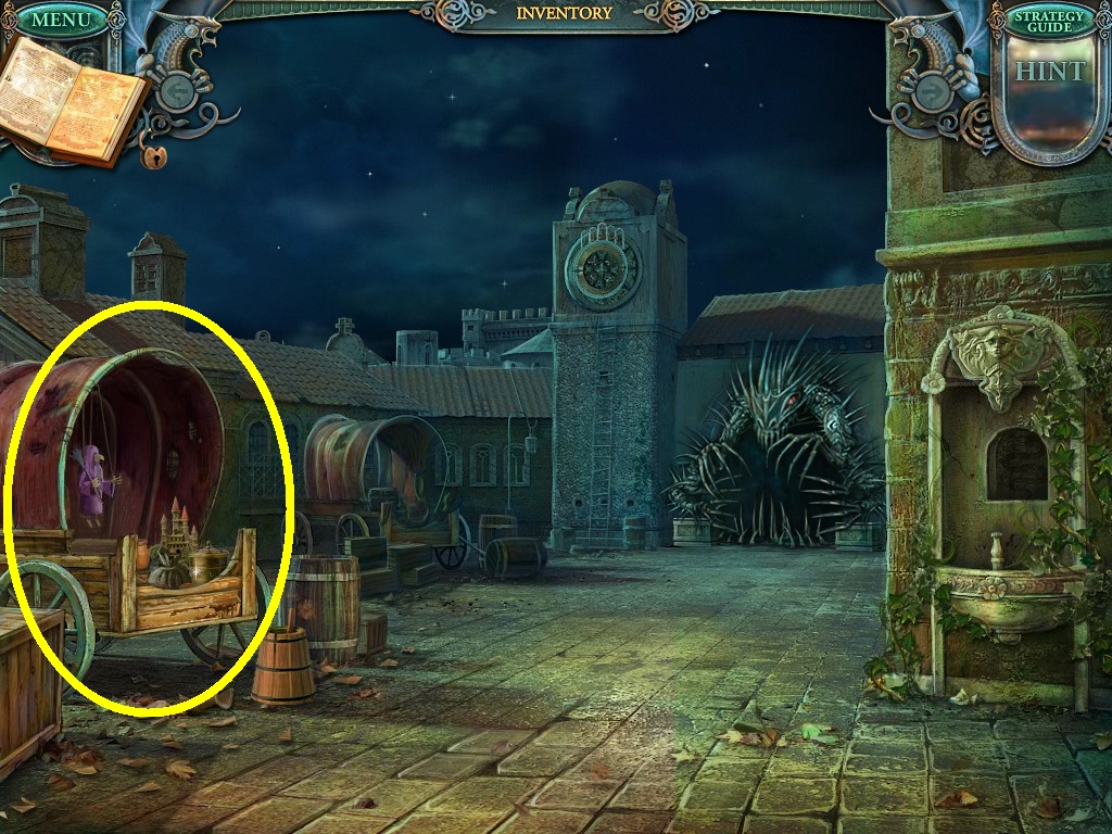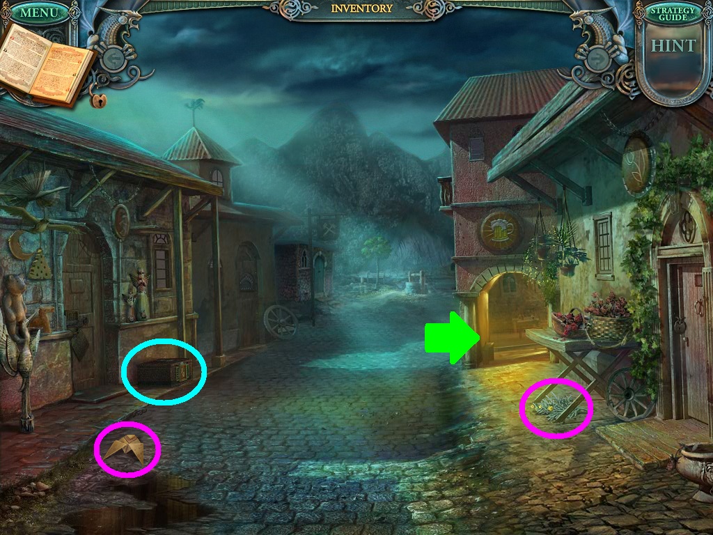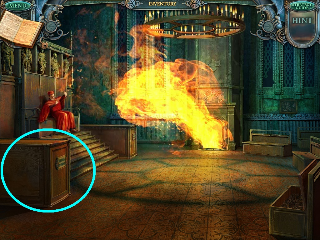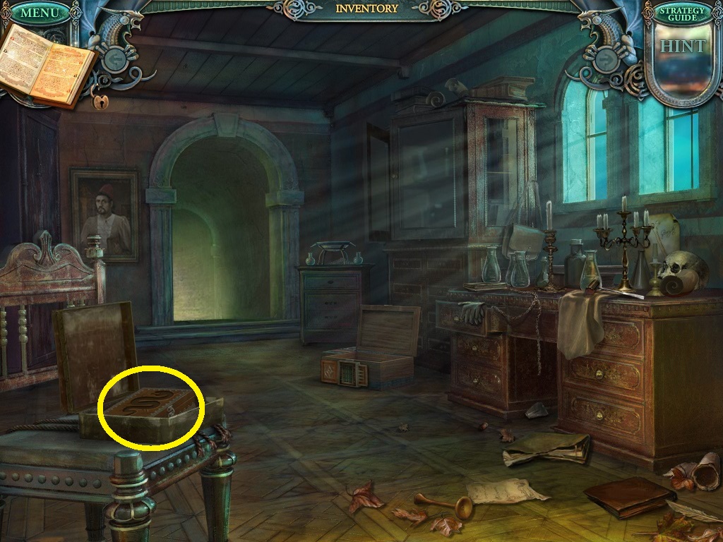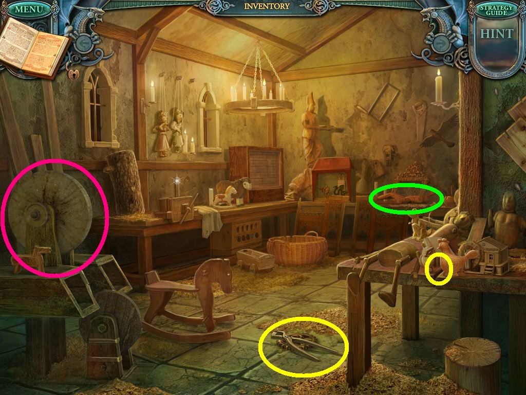- Click the area over the desk in the apothecary to find the hidden object scene.