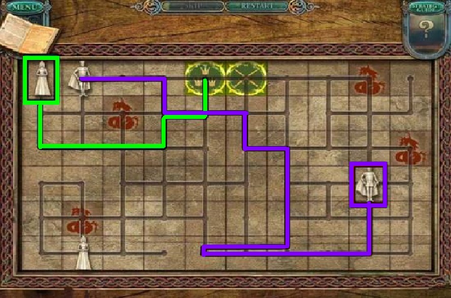 - Move the prince along the purple path.