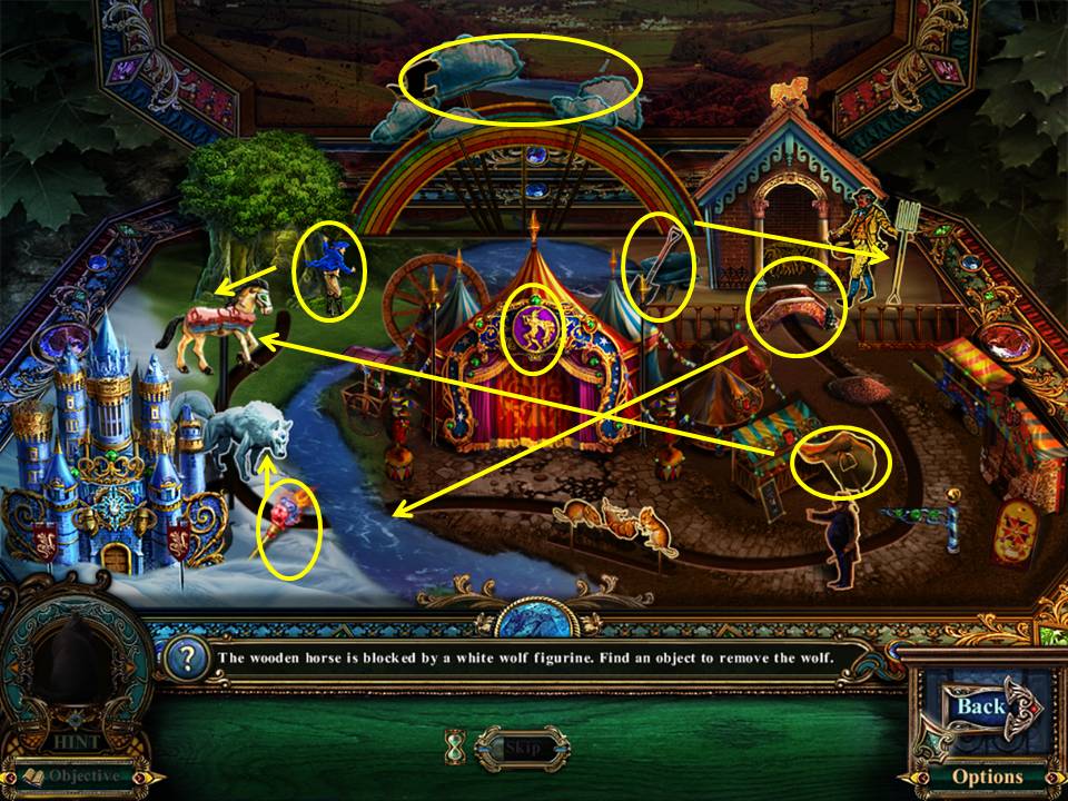 - The object of the game is to use items within the scene to move the horse along the track.