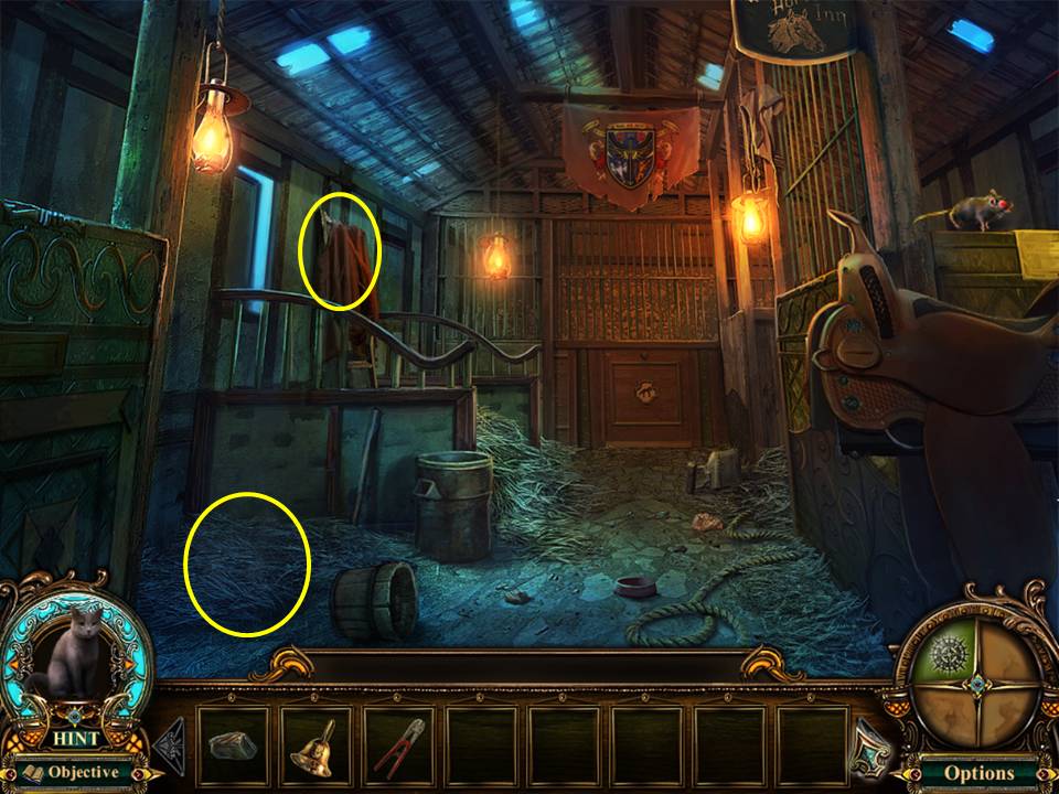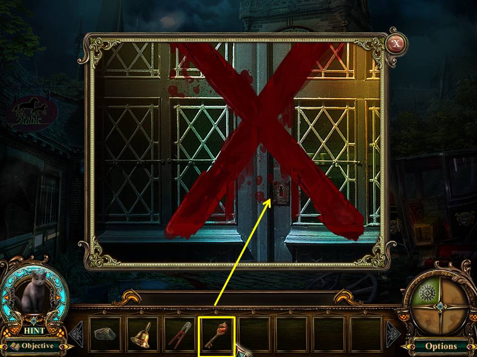 - Zoom into the stable door again and use the STABLE KEY to gain entrance.