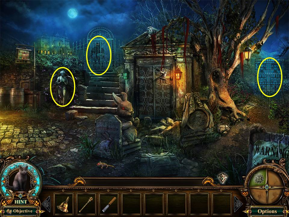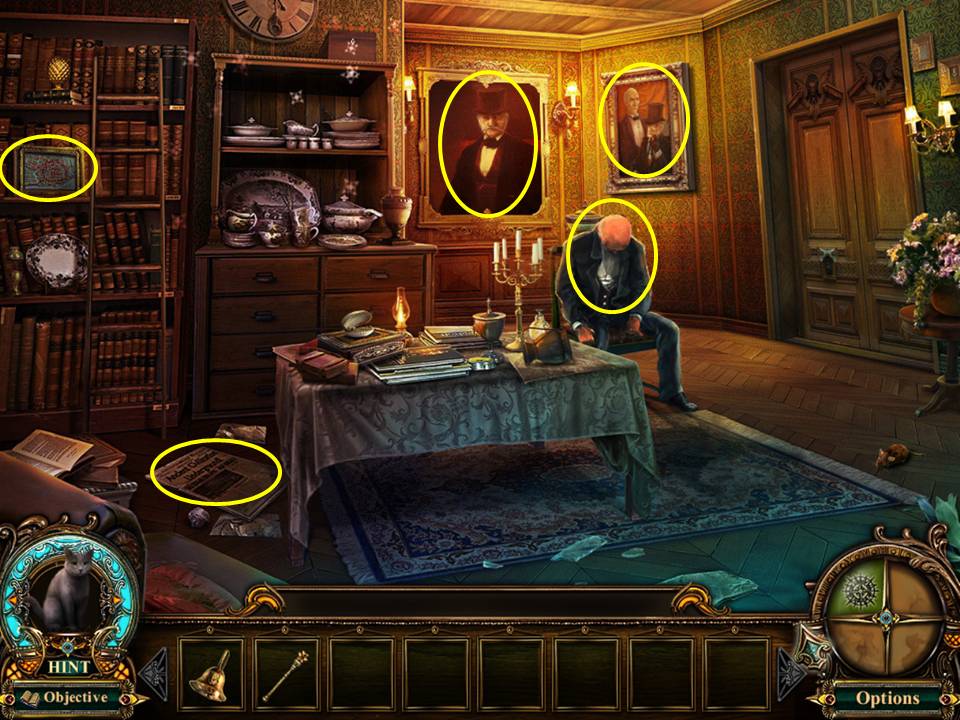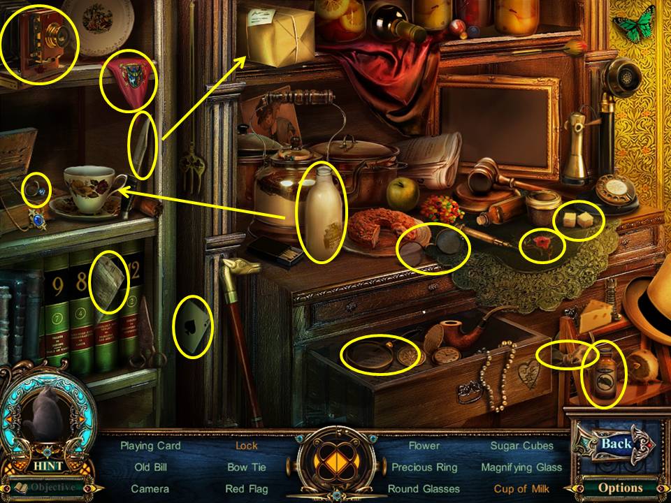- Play the Hidden Object Area by the china cabinet.