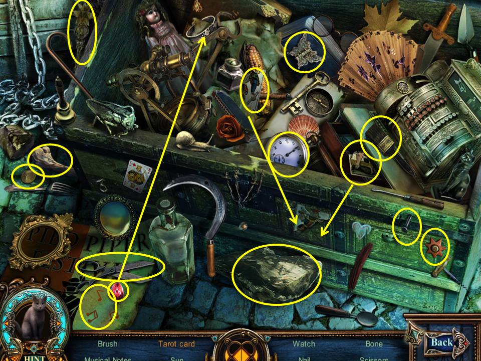 - Play the Hidden Object Area by the chest.