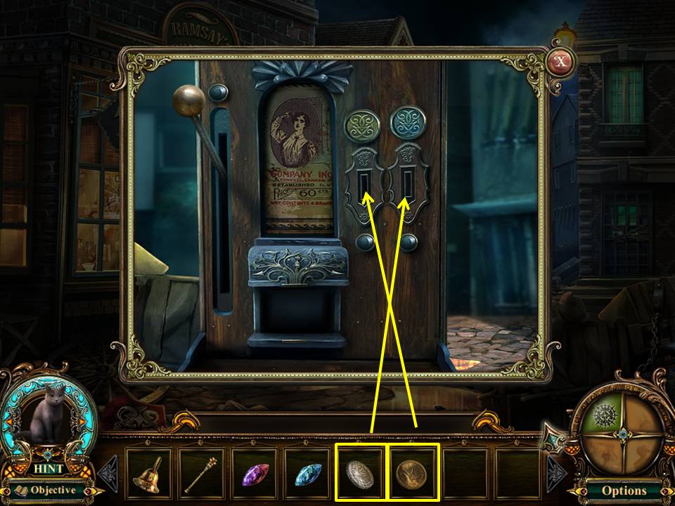 - Insert the silver coin in the silver slot and the gold coin in the gold slot.