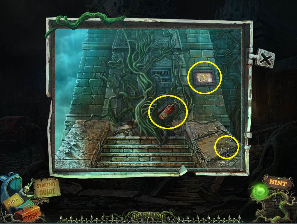 - Access the opened suitcase and take the Book Page and the GARGOYLE EYE.