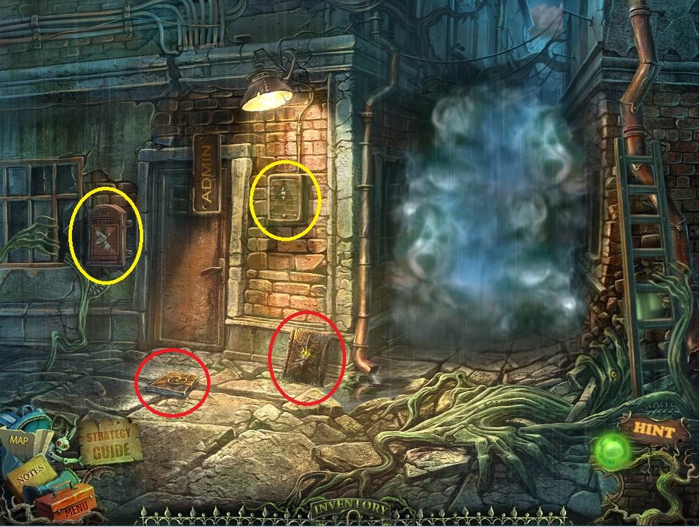 - Go back to the admin building entry way in the alley.