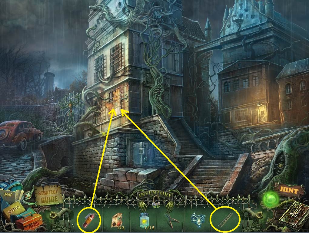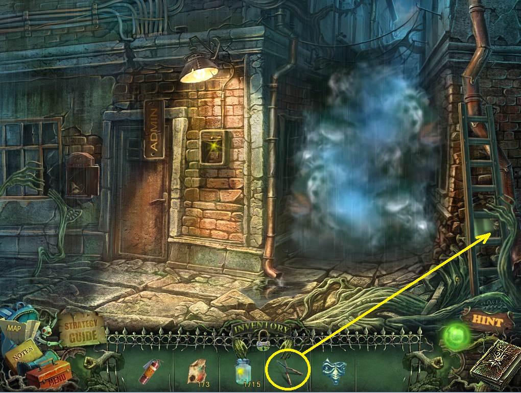 - Click on the ladder, and then use the CLIPPERS to cut the vines.