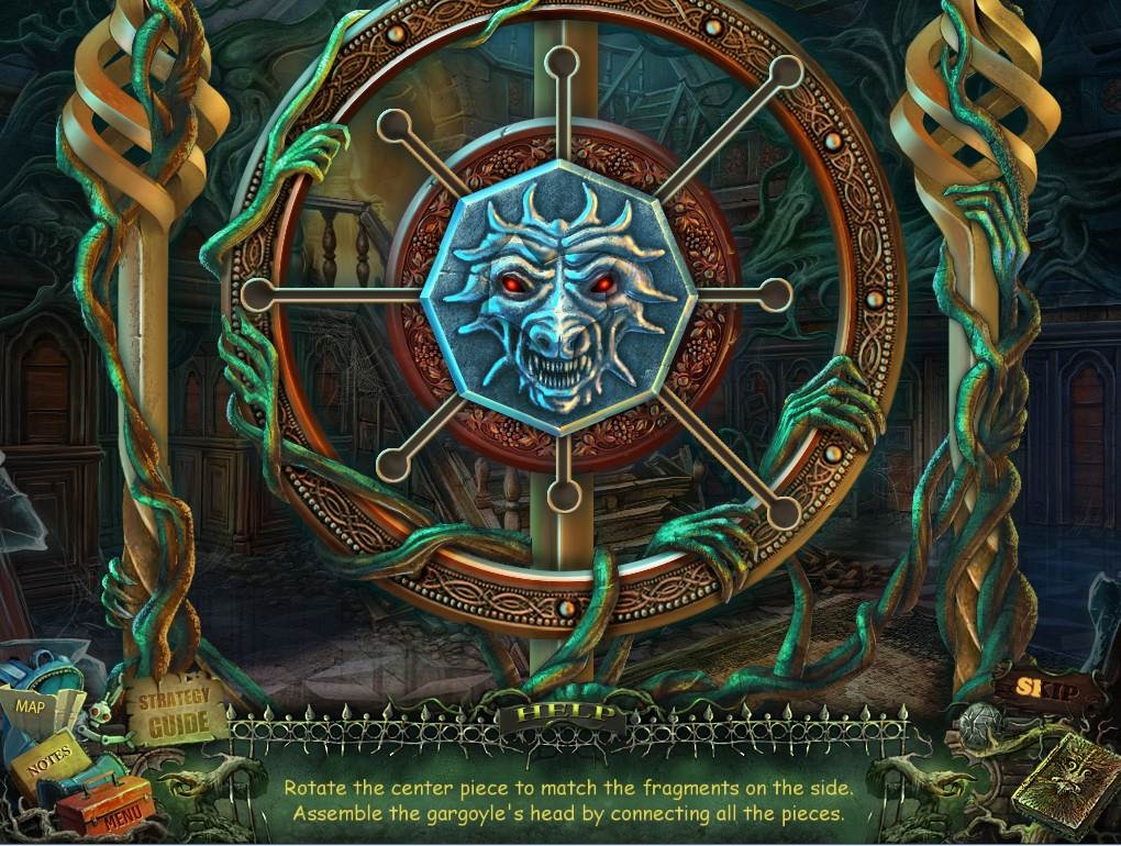 - Rotate the center part and push each outer piece into place to make the gargoyle shown in the screenshot.