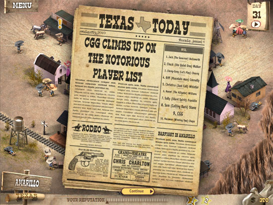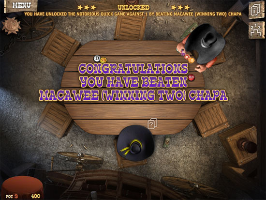 The ultimate goal of the game is to beat the Governor of Texas at poker. However, in order to do that, you must advance to second on the list of the Notorious Players list in the game. To unlock and find all of the Notorious Players, you need to win all of the public transportation tournaments (Stage Coach, Train, and Riverboat) as well as the coal mine, copper mine, and gold mine.