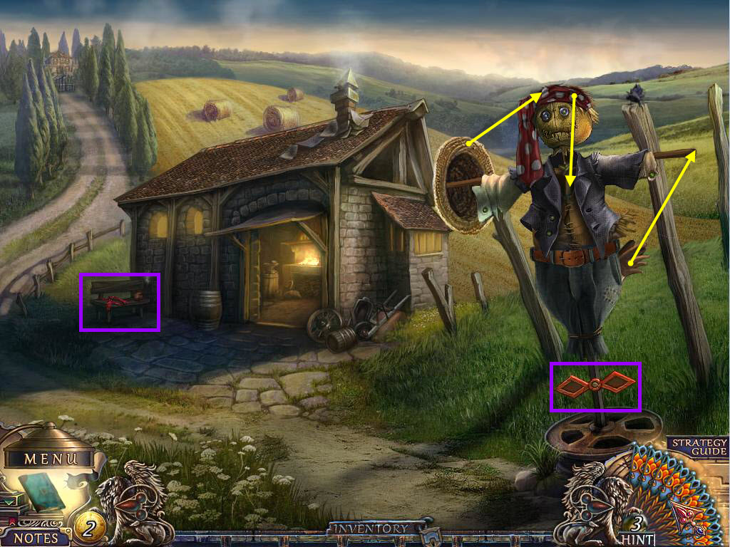 - Click the handle at the bottom of the scarecrow to turn him around.