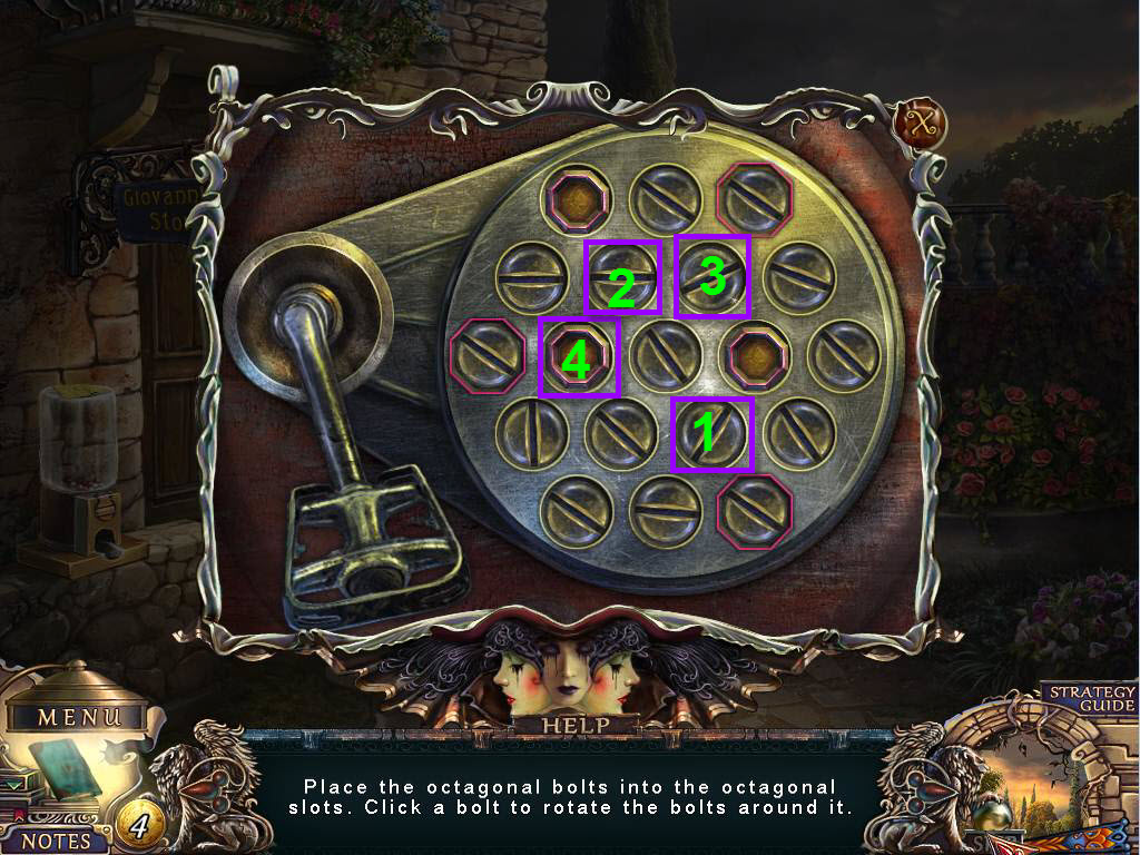 - The solution is to click on the bolts in the following order: 1 twice, 2, 3, and then 4 five times.