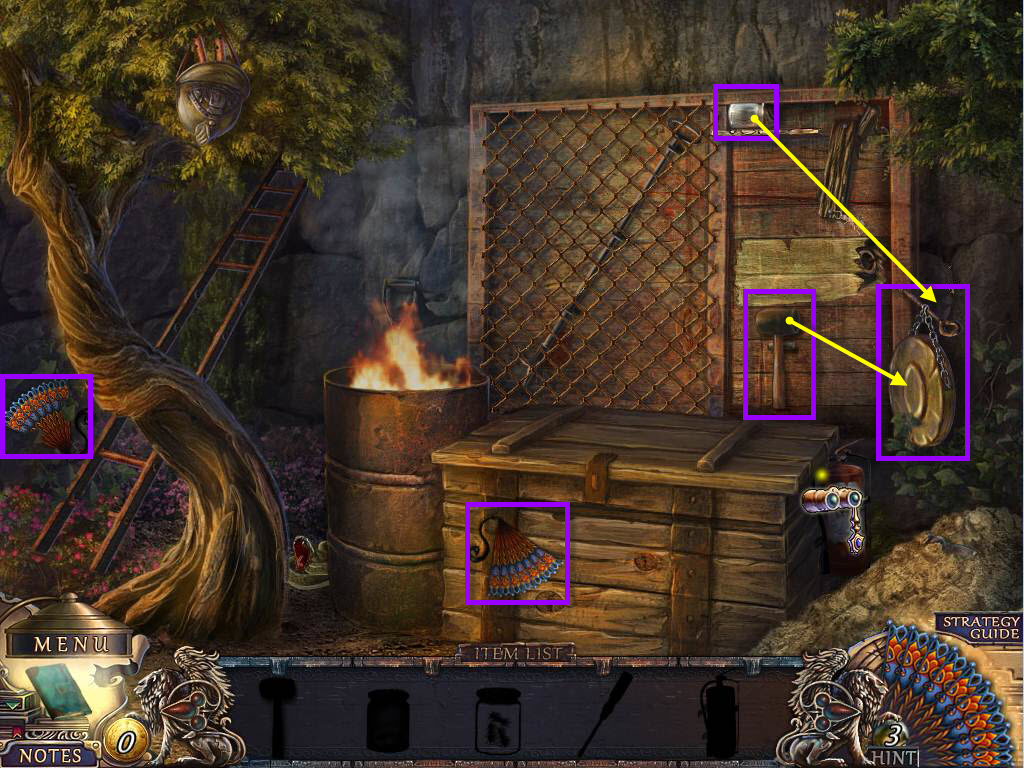 - Click on the sparkles on the right to access the hidden object puzzle.