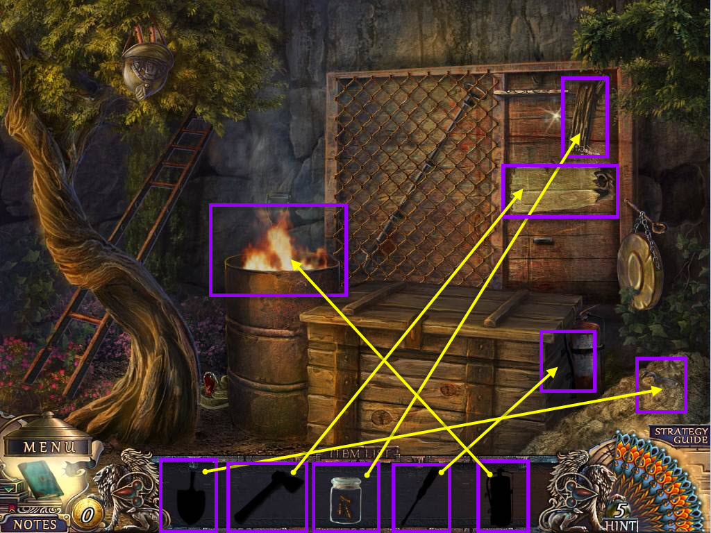 - Use the TERMITES on the wood and take the SCREWDRIVER.