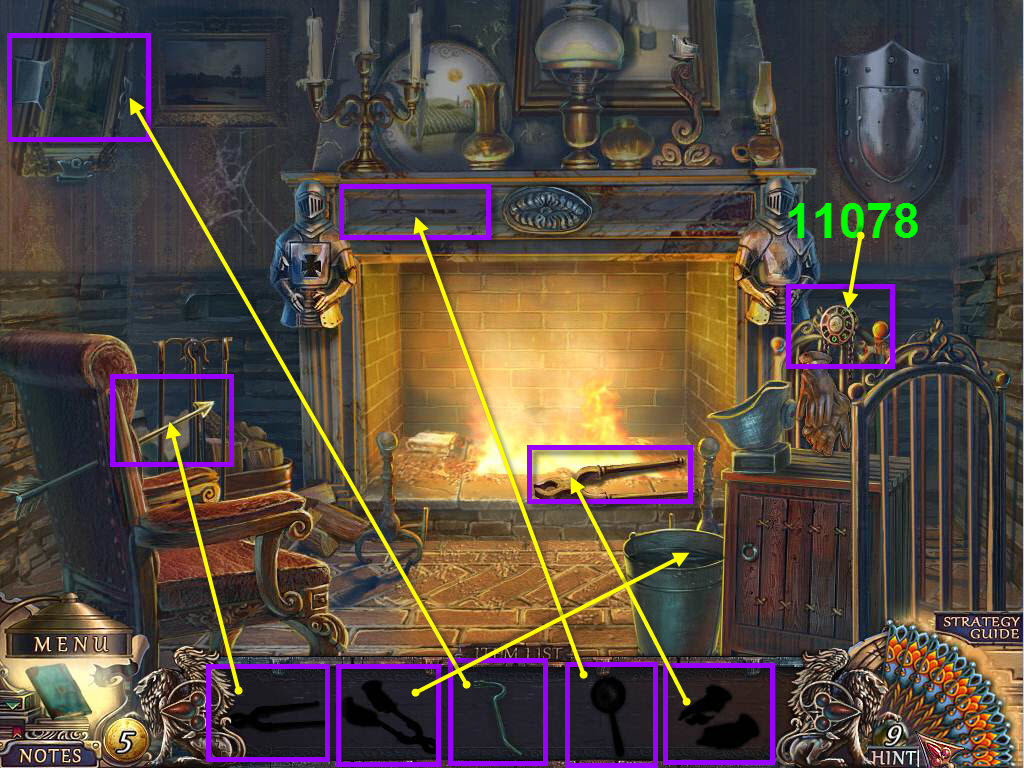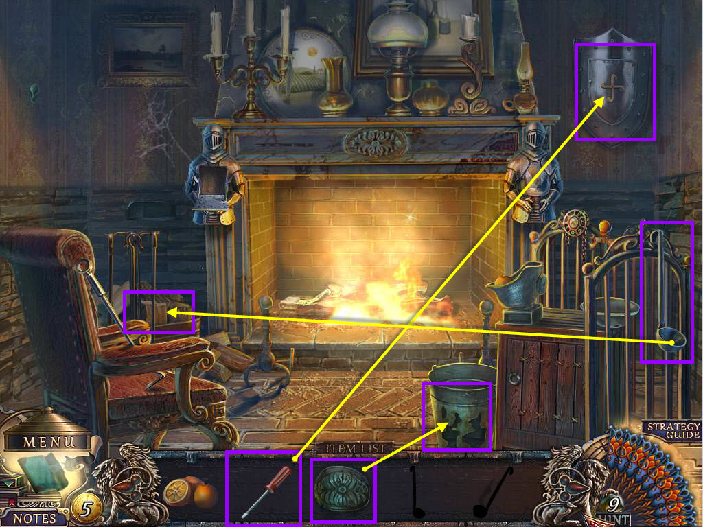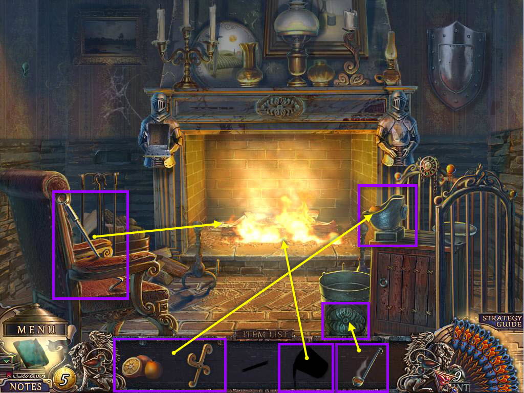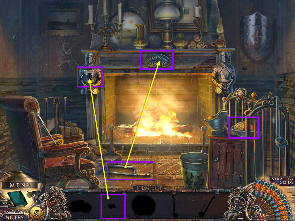 - Use the CROSS on the slot on the knight on the left of the fireplace.