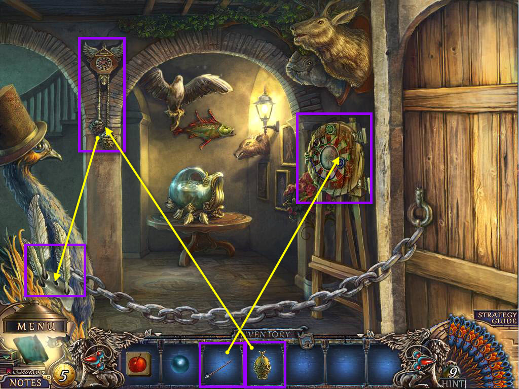 - Use the PEACOCK FEATHER on the peacock.