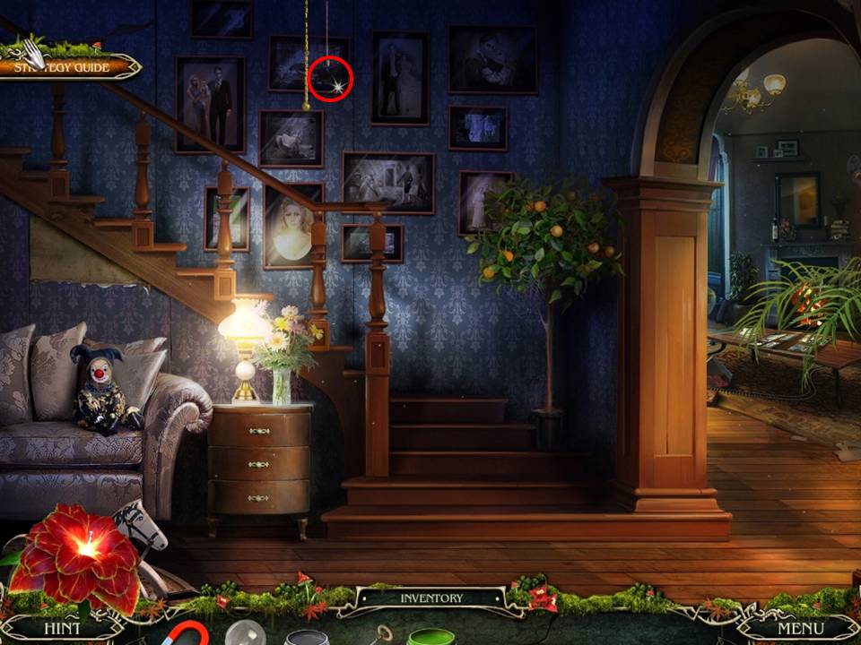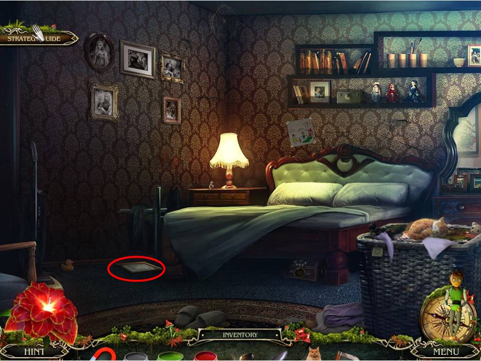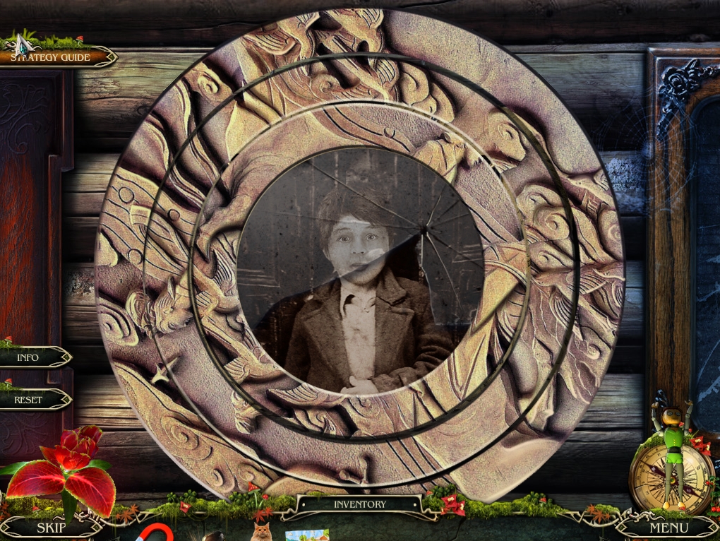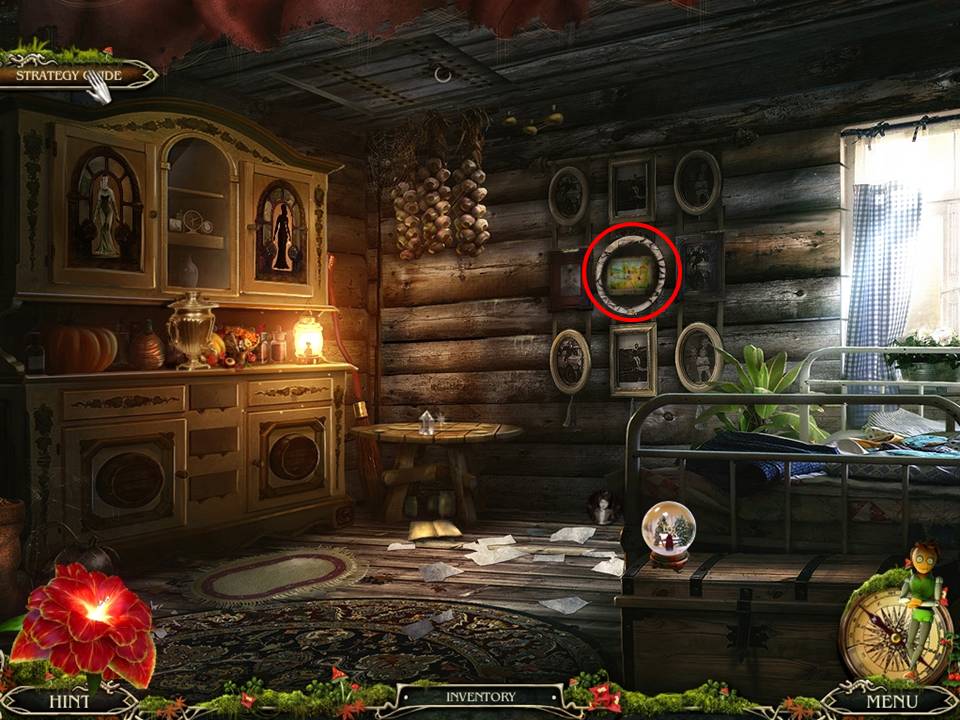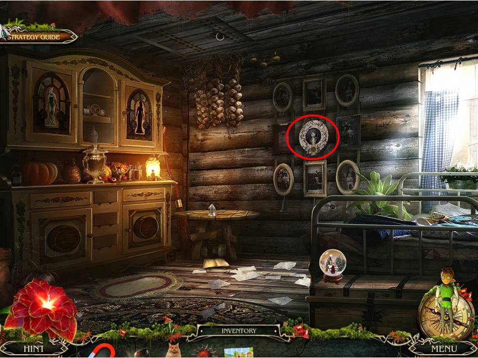 - Note the picture frames on the wall and place the SUN MEDALLION on the framed picture of the young boy to initiate the next puzzle.