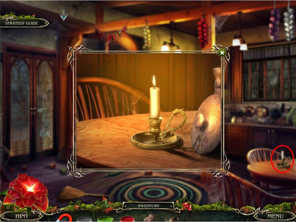 - Use the CANDLE to examine underneath the single sofa chair.
