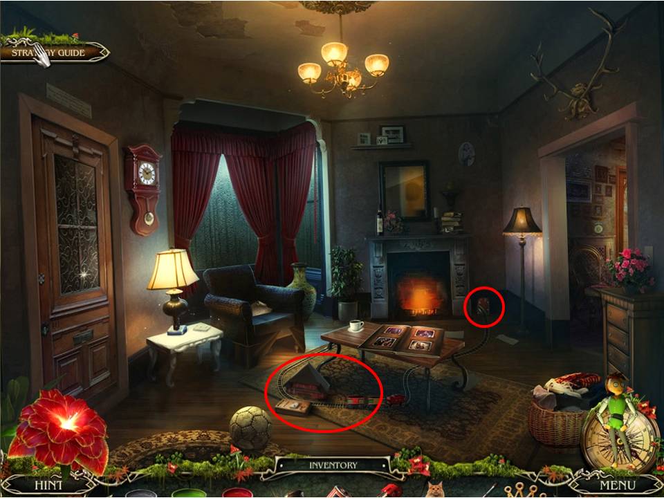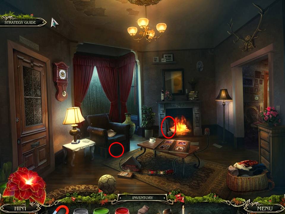 - Return to the fireplace room.
